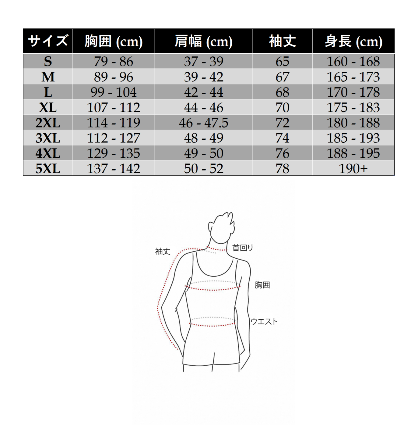 身体寸法これらの数値は身体サイズを示しています。製品の実寸については「Product」表をご確認ください。